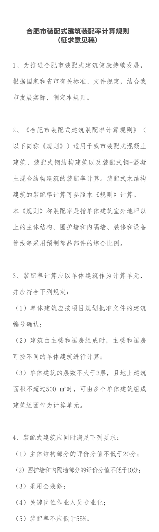 最新,《合肥市裝配式建筑裝配率計(jì)算規(guī)則(征求意見(jiàn)稿)》發(fā)布