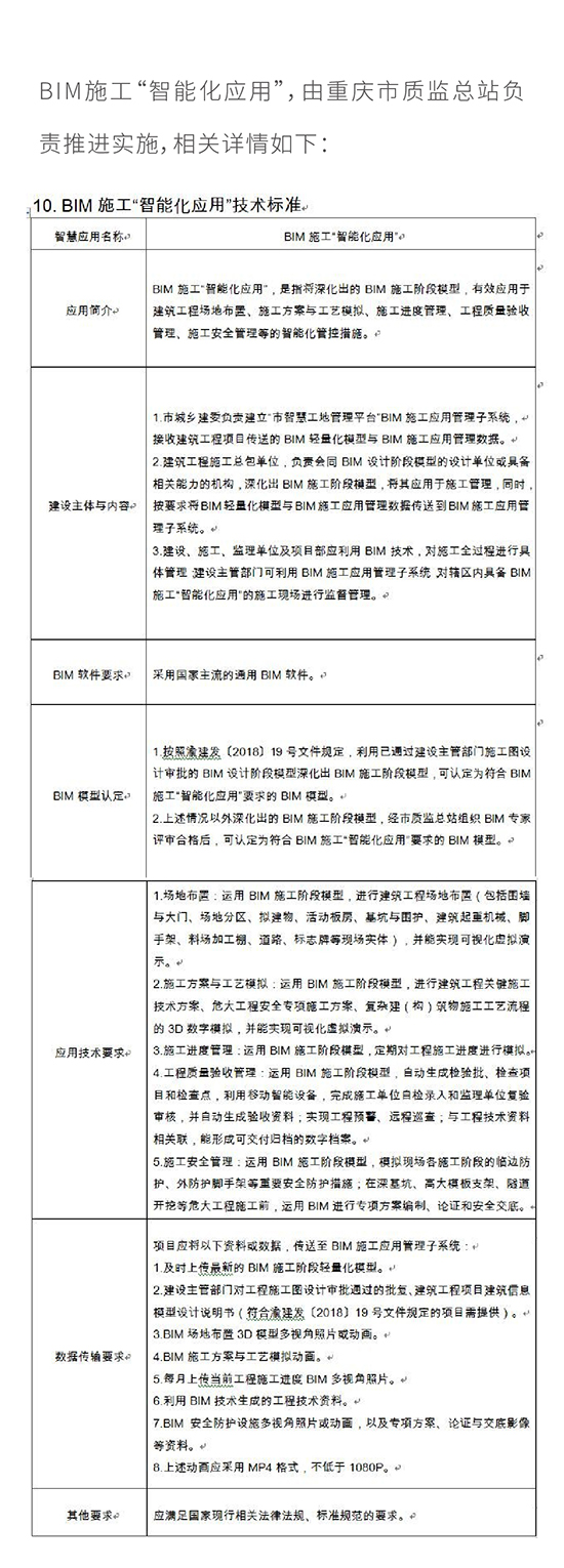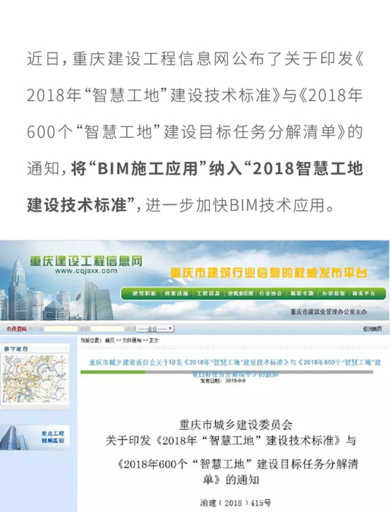 重慶市將“BIM施工應用”納入 “2018智慧工地建設技術標準”!