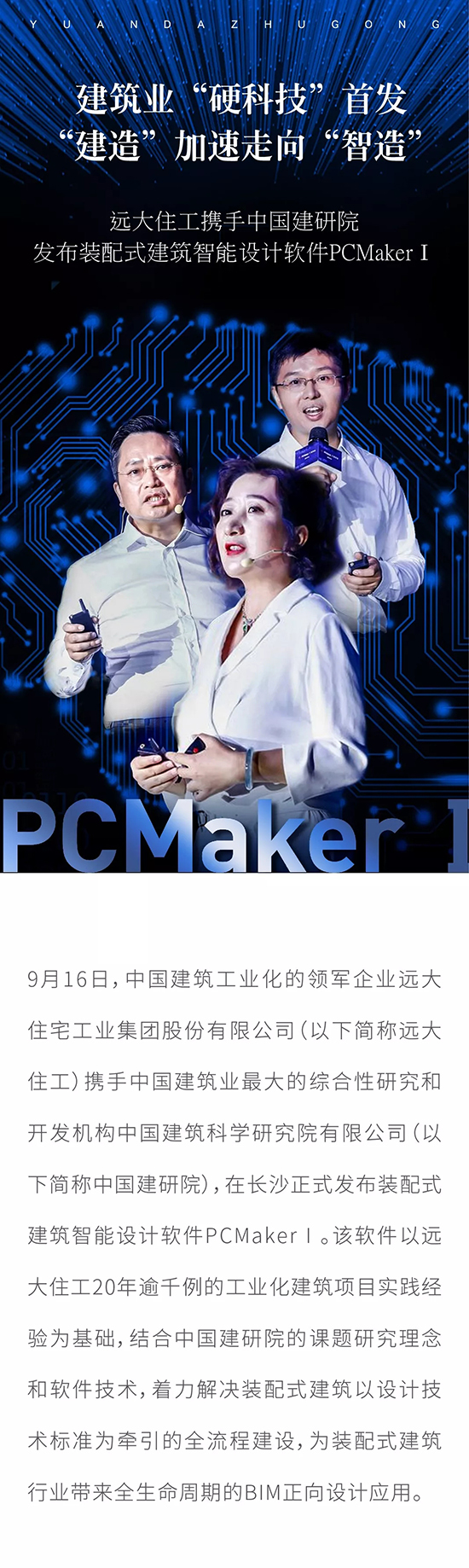 建筑業(yè)“硬科技”首發(fā) “建造”加速走向“智造” 遠(yuǎn)大住工攜手中國(guó)建研院發(fā)布裝配式建筑智能設(shè)計(jì)軟件PCMakerⅠ
