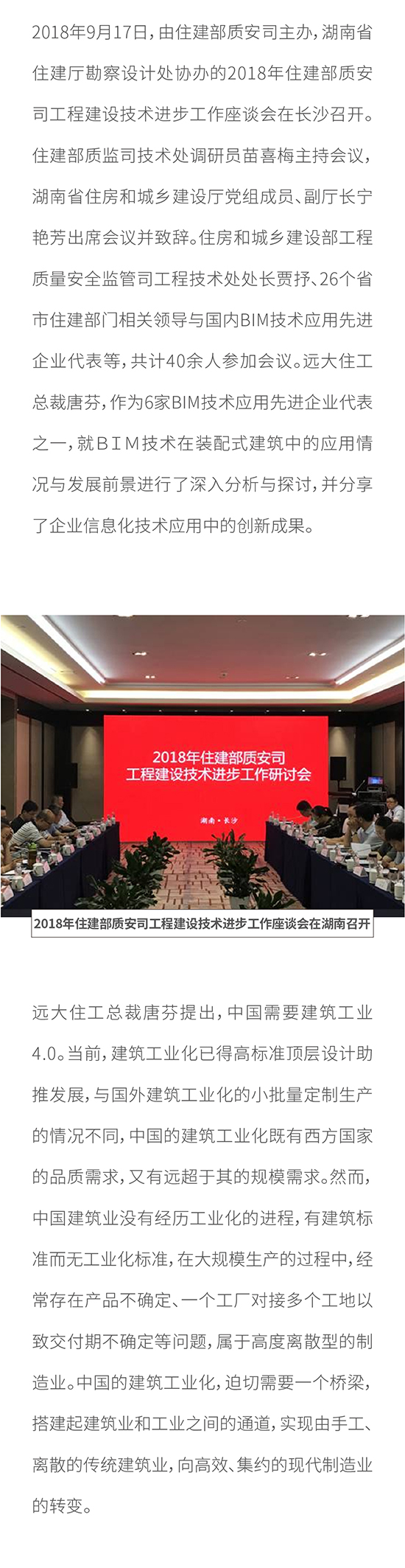 2018年住建部質(zhì)安司工程建設(shè)技術(shù)進(jìn)步工作座談會(huì)在湖南召開(kāi) 遠(yuǎn)大住工BIM技術(shù)應(yīng)用創(chuàng)新成果獲肯定