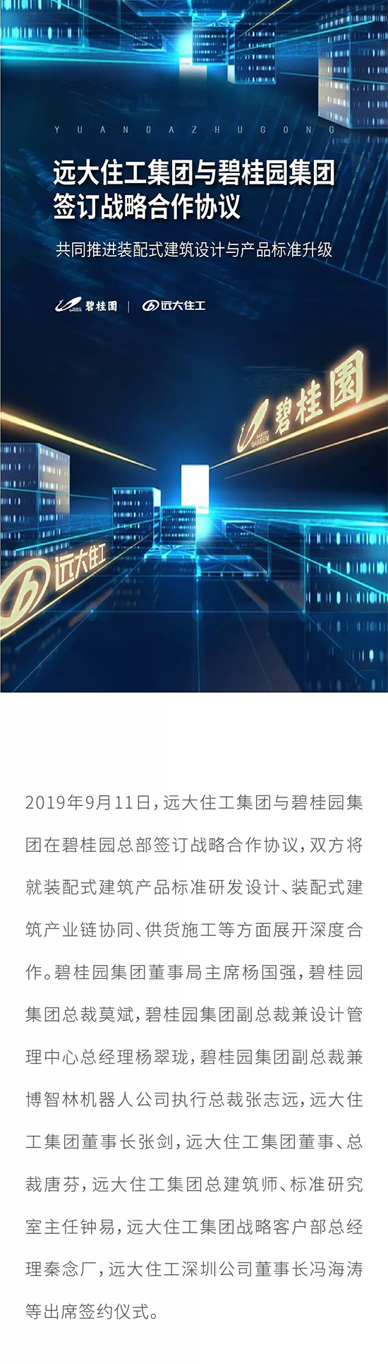 遠大住工集團與碧桂園集團簽訂戰略合作協議 共同推進裝配式建筑設計與產品標準升級