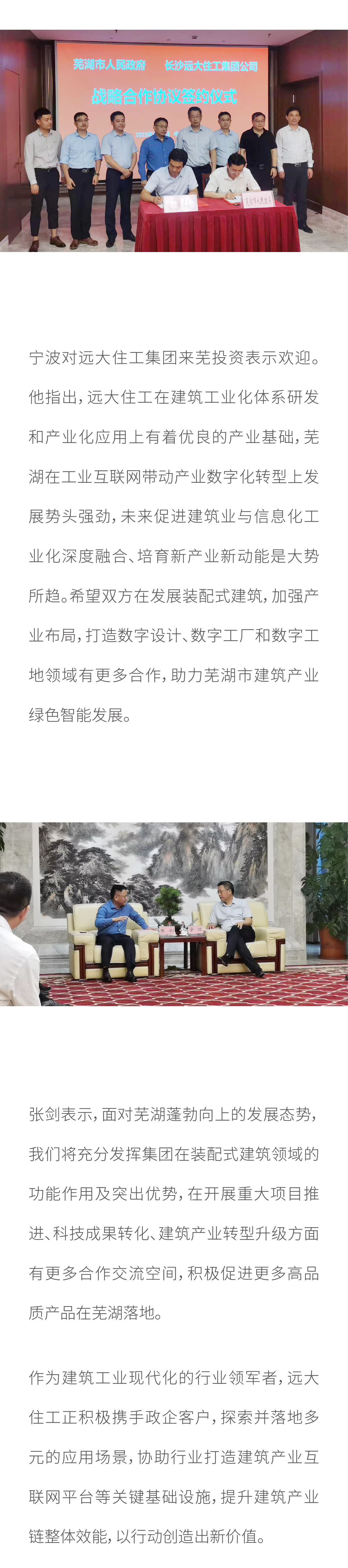 蕪湖市政府與遠(yuǎn)大住工集團(tuán)簽訂戰(zhàn)略合作協(xié)議